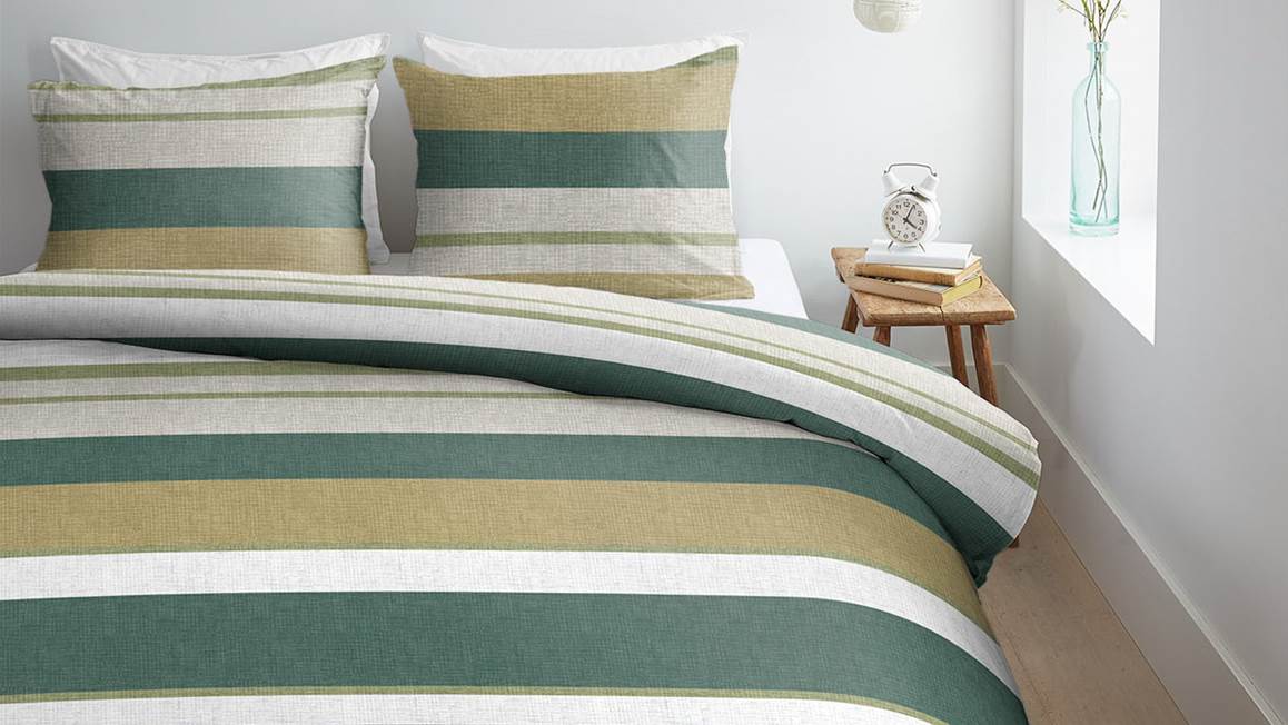 Dankzij het prachtige Dani dekbedovertrek van Ambiante geef je jouw slaapkamer kleur. Dit banendessin bestaat uit frisse groen- en zandtinten die elkaar speels afwisselen. Dankzij het stoere weefselstructuur oogt het overtrek warm en trendy tegelijk. Ook combineer je de kleuren eenvoudig met veel verschillende woonstijlen. Hierdoor kun je er alle kanten mee op! De streepjes zie je ook terugkomen op de bijbehorende kussenslopen. Zo maak je het plaatje helemaal af.