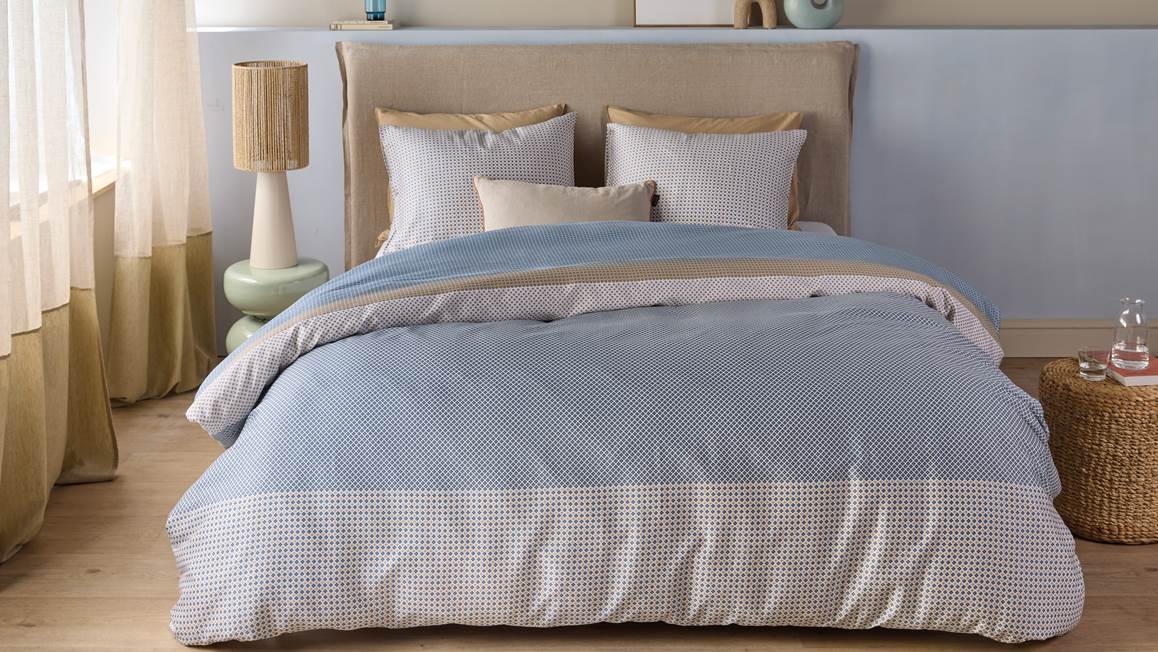 Onder het Beddinghouse Bertram dekbedovertrek droom je iedere avond heerlijk weg. Het blauwe dessin heeft een tijdloze geometrische print die je in iedere slaapkamer kunt combineren. De zandkleurige baan in het midden breekt het ontwerp en zorgt voor net dat beetje extra stijl. De print is dubbelzijdig gedrukt en de bijbehorende kussenslopen maken het plaatje compleet.