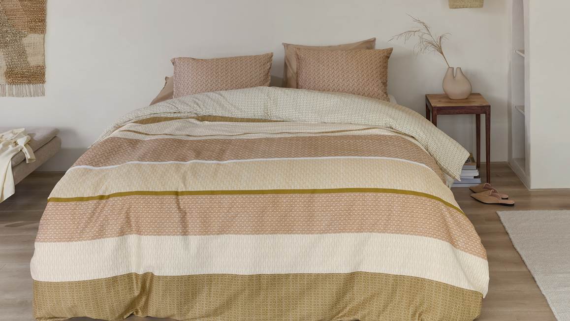 Geef jouw slaapkamer een sfeervolle uitstraling met het Beddinghouse Hilde dekbedovertrek. Een modern banenpatroon wordt gecombineerd met trendy grafische details, zodat het een prachtig geheel vormt. Er is gebruik gemaakt van een natuurlijk kleurpalet die helpt om iedere avond heerlijk ontspannen in slaap te vallen. Sta iedere dag weer uitgerust op.