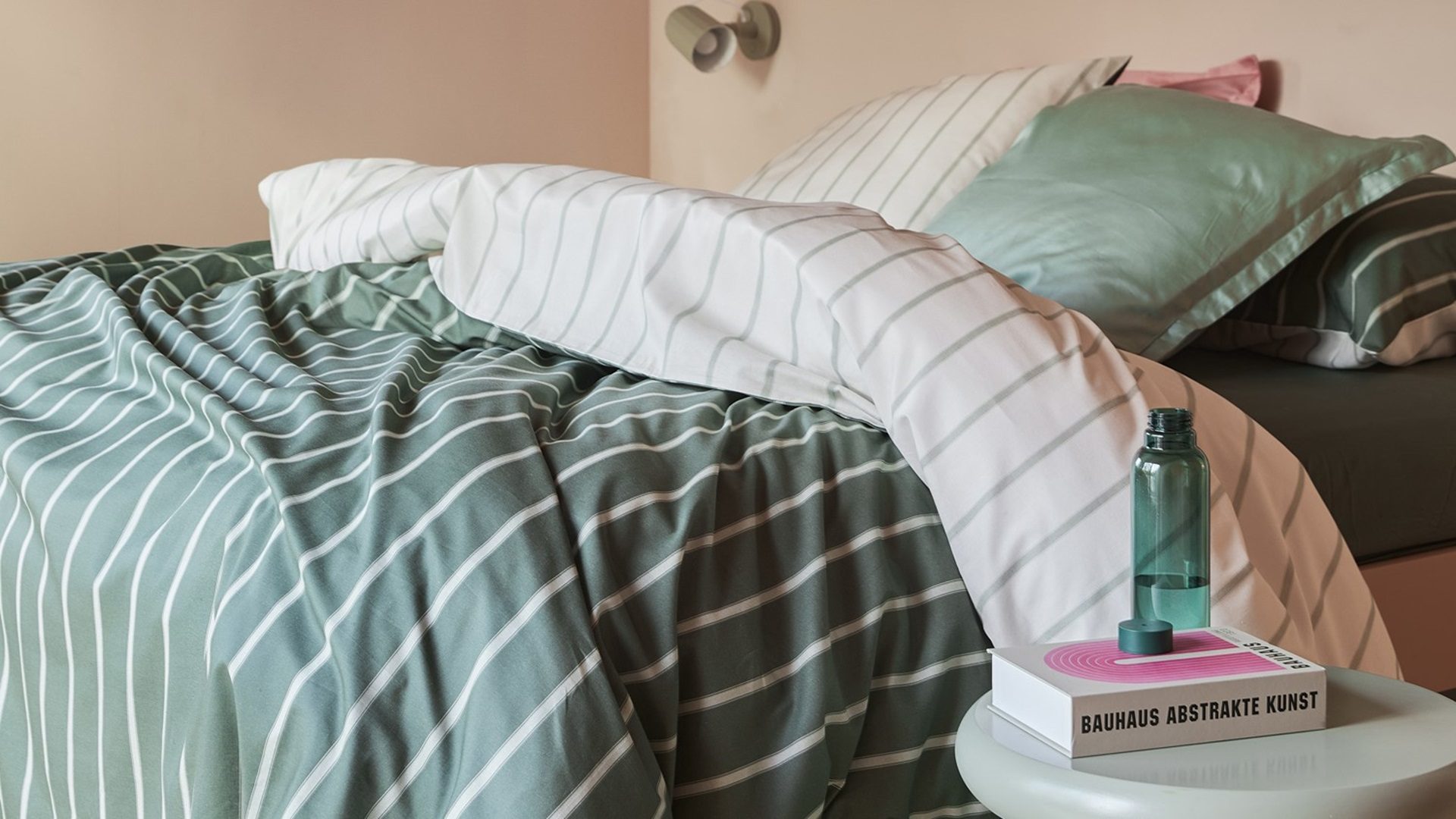 Anno 2025 zijn streepjes weer helemaal hip! Een trendy overtrek mag natuurlijk niet ontbreken in de voorjaarscollectie en dus introduceren we je graag het Eenvoud dekbedovertrek. De naam geeft het misschien al wat weg, maar de print is vrij simpel. Al past het helemaal in de hedendaagse slaapkamer. Een donkergroene tint met een subtiele witte streep en het design is compleet. Maar draai het overtrek om en tover de contrasterende achterzijde tevoorschijn. En het leuke is dat de meegeleverde kussenslopen ook beide kleurstellingen bevatten, zodat je eindeloos kunt combineren!