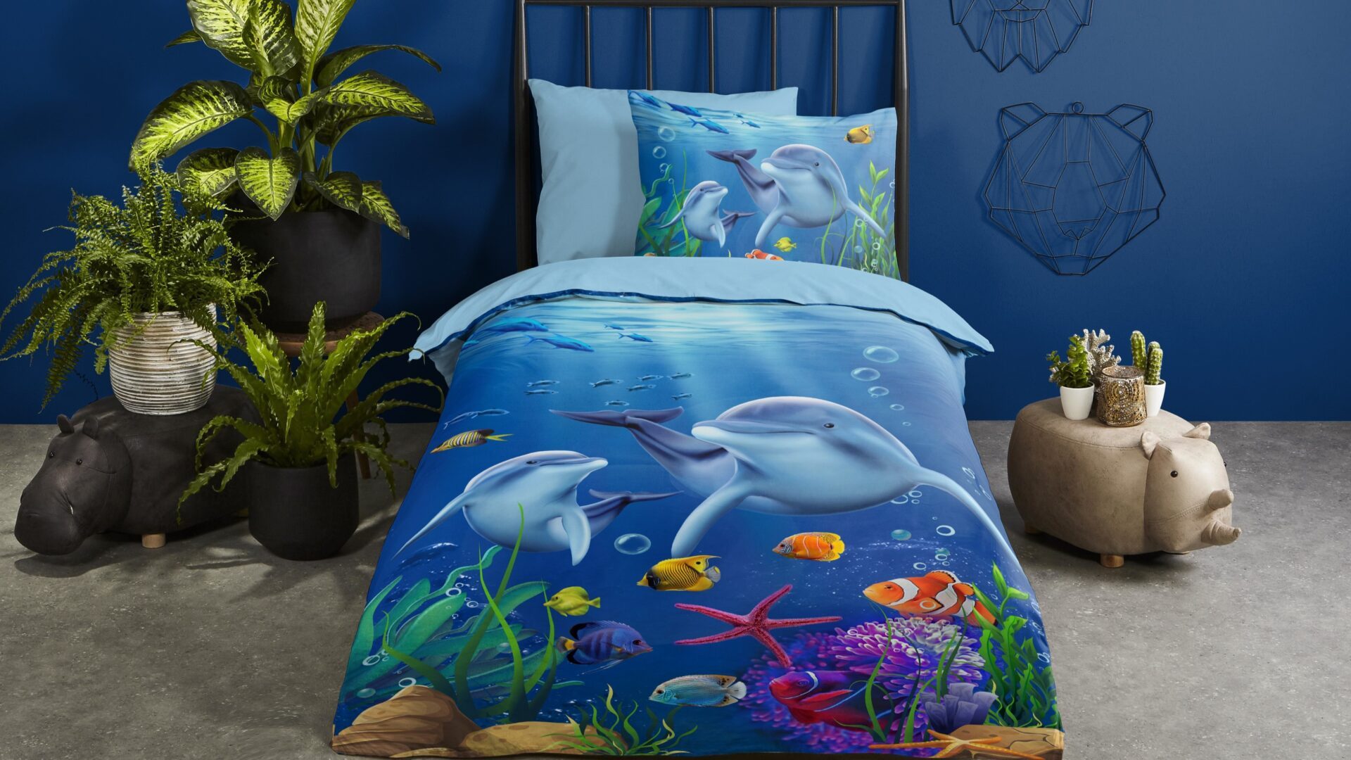 Duik de wondere wereld in met de leukste zeedieren. Van pinguïns, ijsberen tot dolfijnen en vissen, spetterende prints vind je gegarandeerd in het ruime assortiment. Met de muren in een blauwe kleur is het al direct alsof jouw slaapkamer omgetoverd is tot een oceaan. Hierbij hoort natuurlijk een overtrek die de wondere wereld van de zee showt. Naast welke vis zwem jij vannacht?