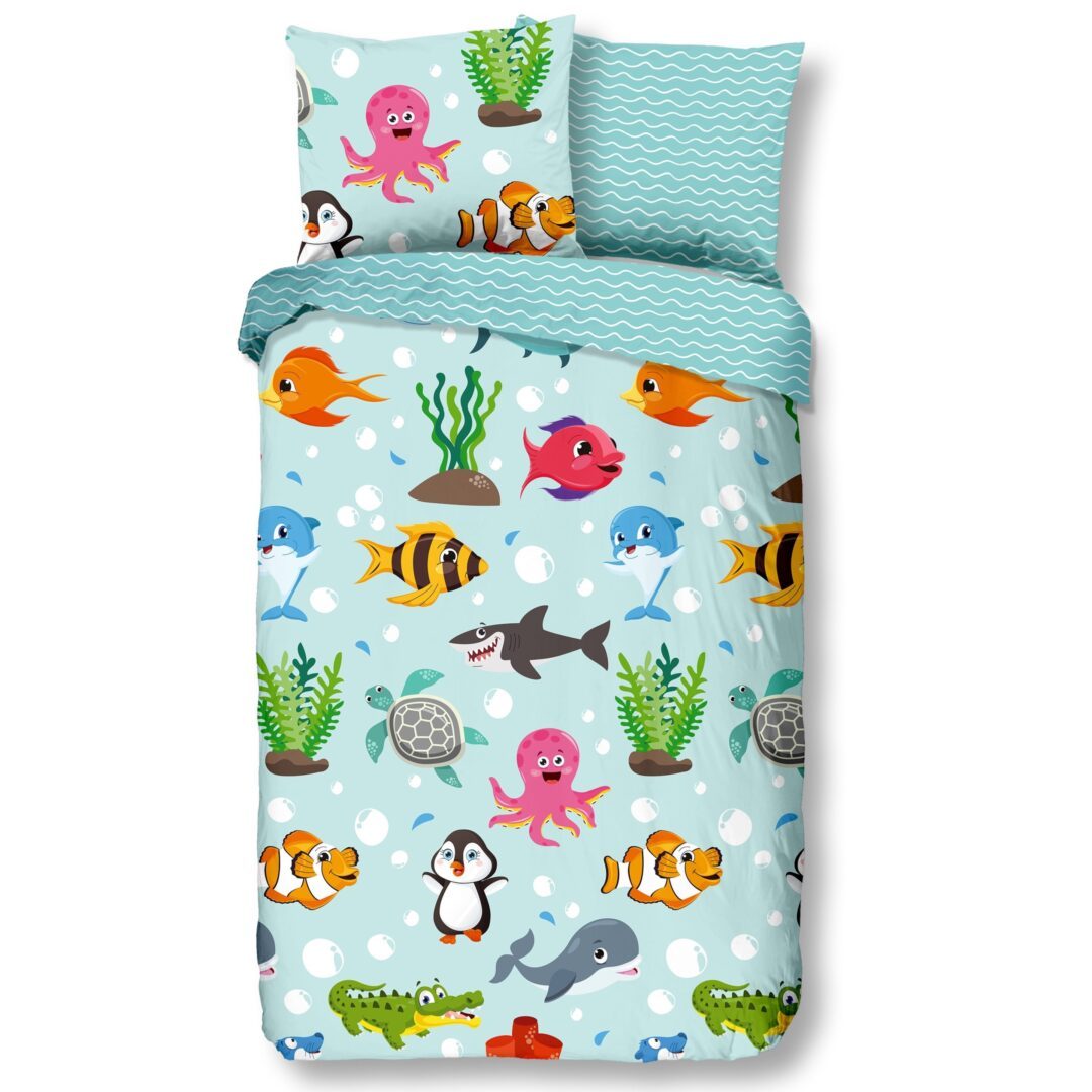 Duik de wondere wereld in met de leukste zeedieren. Van pinguïns, ijsberen tot dolfijnen en vissen, spetterende prints vind je gegarandeerd in het ruime assortiment. Met de muren in een blauwe kleur is het al direct alsof jouw slaapkamer omgetoverd is tot een oceaan. Hierbij hoort natuurlijk een overtrek die de wondere wereld van de zee showt. Naast welke vis zwem jij vannacht?