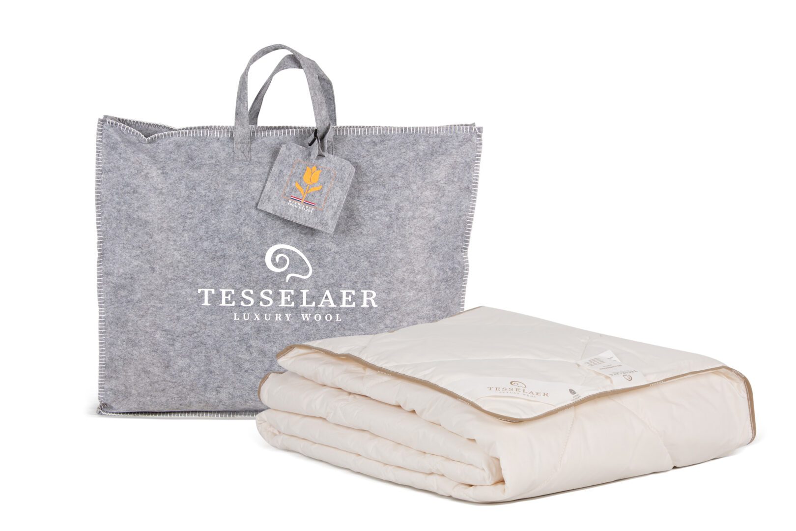 In de wasmachine stop je het alleen als het echt noodzakelijk is en dan moet je wel eerst goed het waslabel checken. Was het dan op het wolprogramma van 30 graden en kies voor een lager toerental tot maximaal 600. Het drogen doe je vervolgens nooit in de droger, omdat de vezels dan beschadigen. Leg het in plaats daarvan plat op een wasrek in de schaduw en draai het af en toe om, zodat beide kanten goed op kunnen drogen. Het opbergen van je beddengoed doe je in een tas op een luchtdroge plek. Deze tas krijg je van Tesselaer er gewoon standaard bijgeleverd!