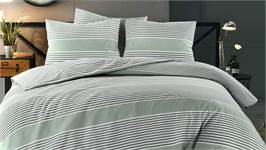 Geef jouw slaapkamer een vrolijke touch met het Day Dream Davos dekbedovertrek. Het licht groene dessin bevat een streepjesprint afgewisseld met effen horizontale banen. De strepen zijn wat breder, zodat het overtrek sereen blijft ogen. Hierdoor kom je iedere avond helemaal tot rust. Je combineert hem eenvoudig in verschillende woonstijlen, zoals een landelijk interieur.