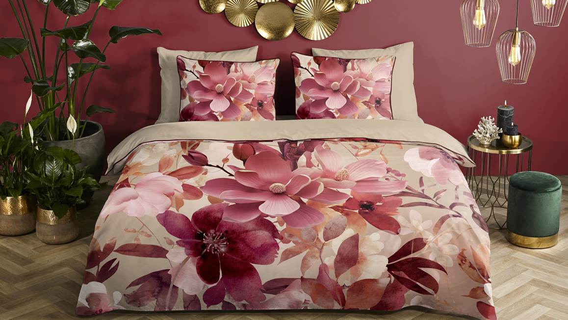 Ben jij een echte liefhebber van bloemenprints? Dan mag het Descanso Chaja dekbedovertrek natuurlijk niet ontbreken in jouw slaapkamer. Op het zandkleurige dessin staan prachtige groot bloemen in sfeervolle roodtinten. Hierdoor creëer je eenvoudig een romantische uitstraling in jouw interieur. Daarnaast kun je ook een luxe touch toevoegen door het overtrek een stukje om te slaan en een omslag te maken met de effen zandkleurige achterzijde. Zowel het overtrek als de bijbehorende kussenslopen zijn afgewerkt met een bies in dezelfde roodtint als de print.