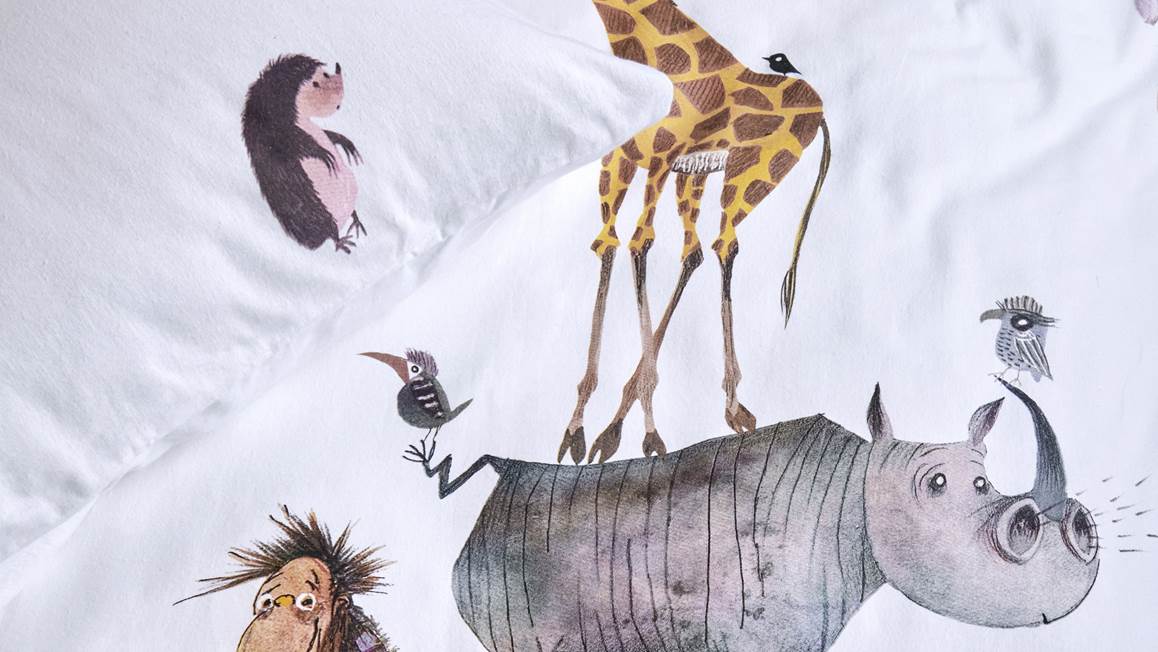 Heb je ooit wel eens een giraf op de rug van een olifant zien staan? Op het Fiep Amsterdam Dieren Stapelen flanel dekbedovertrek zie je allerlei verschillende dieren op elkaars rug staan. Maar hoe komen de schilpadden en de flamingo nou op de rug van de giraf? Op het bijbehorende kussensloop zie je de aap aan zijn staat hangen en de egel loopt naar het aapje toe.