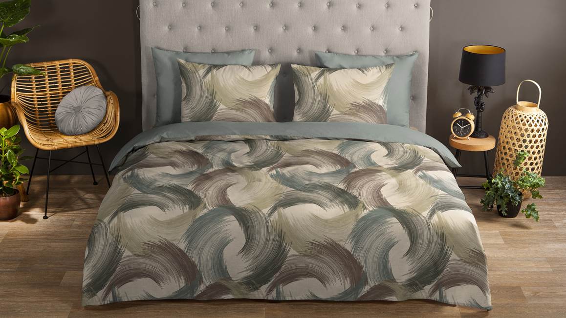 Droom iedere avond heerlijk weg onder het Good Morning Gaston dekbedovertrek. De prachtige grafische print creëert in een handomdraai een rustgevende sfeer in jouw slaapkamer. Het kleurpallet bestaat uit verschillende aardetinten die sfeervol ogen. Met de effen groene achterzijde kun je een luxe omslag creëren. Doordat de bijbehorende kussenslopen beide prints bevatten, kun je leuk mixen en matchen.