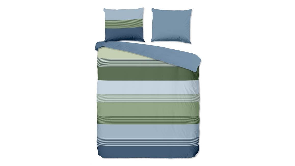 Met het Good Morning Mali dekbedovertrek voeg je eenvoudig extra kleur toe aan jouw slaapkamer. Het dessin bevat een gestreepte print in diverse groen- en blauwtinten. Dit kleurpallet oogt erg sereen. De achterzijde is effen blauw, zodat je een luxueuze omslag kunt creëren. Het Mali dekbedovertrek komt prachtig tot zijn recht in een landelijk interieur.