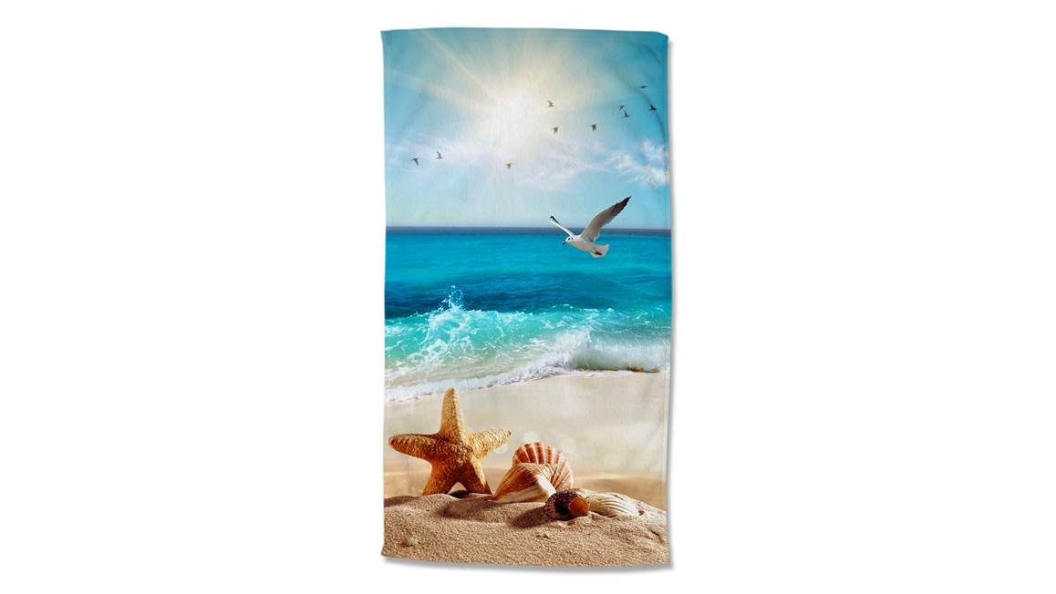 Voor een heerlijk stranddagje kan een leuk strandlaken natuurlijk niet ontbreken. Het Good Morning Sealife strandlaken is dan ook echt een must-have. De print bestaat uit een hagelwit strand met een helderblauwe zee. Hier wil je gewoon in het water duiken. Op de voorgrond liggen enkele schelpen en zeesterren en in de lucht zie je de vogels in het zonnetje vliegen.