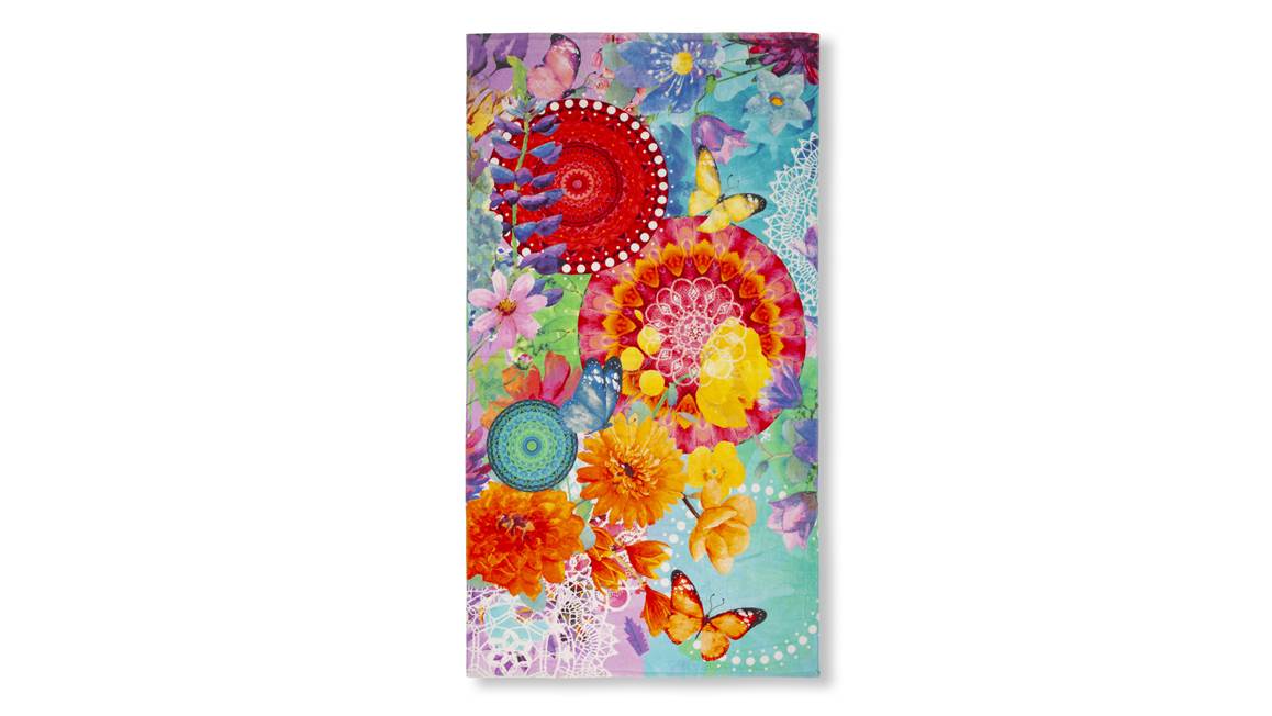 Een vrolijk strandlaken mag natuurlijk niet ontbreken in jouw strandtas. Dit kleurrijke Vitori strandlaken van HIP Collection brengt je gelijk in zomerse sferen. Mandala's, vlinders en bloemen stelen de show in de botanische print.