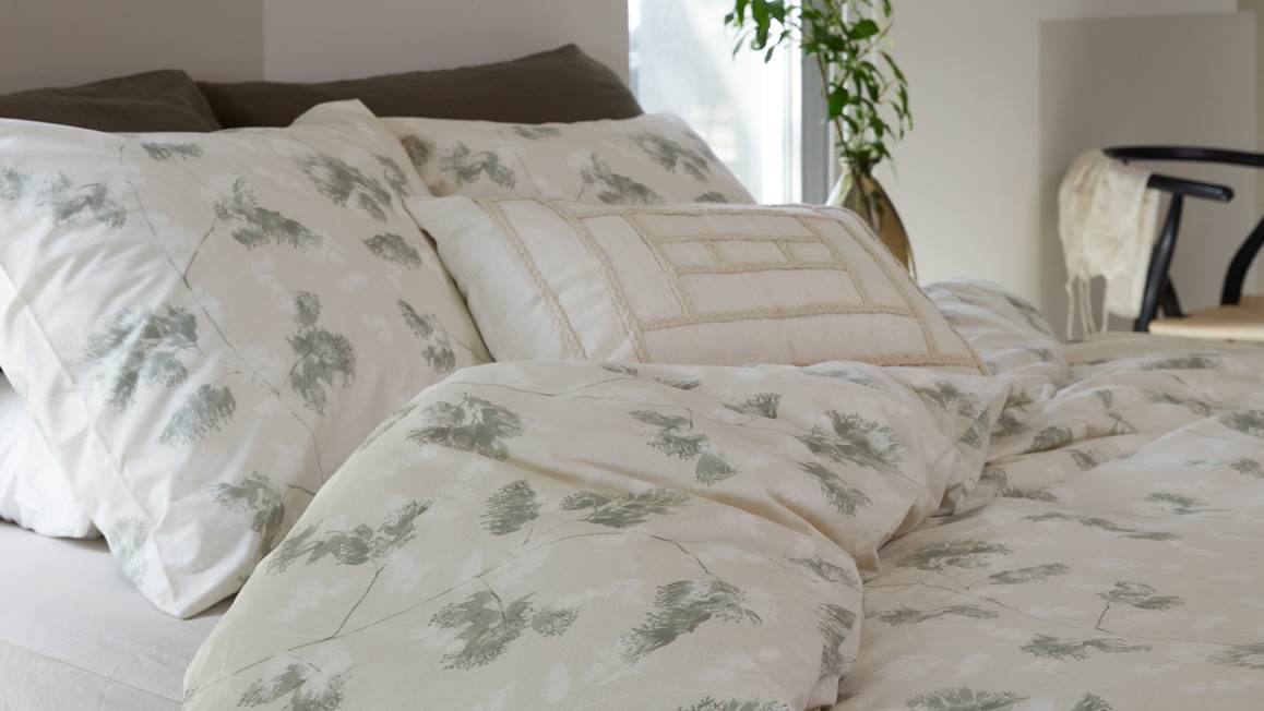 Val heerlijk in slaap met Ivorlyn Ayr dekbedovertrek. Op het beige overtrek staat een bladerprint in het groen en wit. Door de overlapping en verschillende tinten ontstaat er een luxueuze diepte in het ontwerp. Het Ayr dekbedovertrek combineer je eenvoudig met diverse kleuren en in verschillende woonstijlen, zoals een landelijk interieur. De dubbelzijdige print loopt door op de bijbehorende kussenslopen.