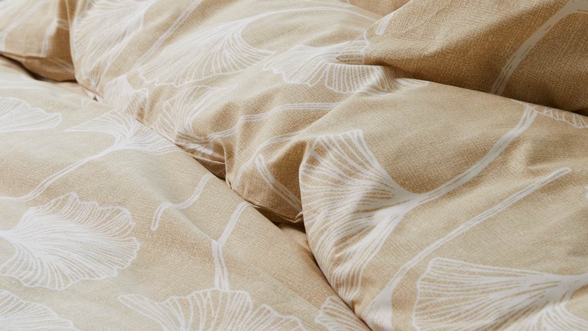 Met het Ivorlyn Wick dekbedovertrek geef je jouw slaapkamer een sfeervolle uitstraling. Het gouden dessin bevat een print van grote bladeren, zodat het warm en sereen oogt. De stijlvolle print is dubbelzijdig en loopt door op de bijbehorende kussenslopen. Het overtrek komt prachtig tot zijn recht in een landelijk interieur.