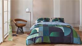 Met het Kardol Utopia dekbedovertrek geef je jouw interieur een stijlvolle uitstraling. Rechthoekige vlakken worden afgewisseld met ronde vormen, waardoor er een speels ontwerp ontstaat. Het kleurpalet bestaat uit blauwe en groene tinten, van licht naar donker. Hierdoor ontstaat er een harmonieuze en sfeervolle look. De achterzijde heeft een effen lichtblauwe kleur. Hiermee creëer je in een handomdraai een mooie omslag.