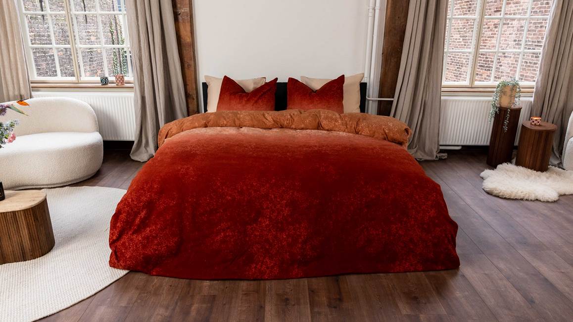 Geef jouw slaapkamer een stijlvolle touch met het Kayori Gassho flanel dekbedovertrek. Het dessin bevat een luxueus kleurverloop van een donkere roodtint naar een lichtere tint. De bijbehorende kussenslopen zijn ook voorzien van hetzelfde kleurverloop. Hierdoor ontstaat er een prachtig geheel.