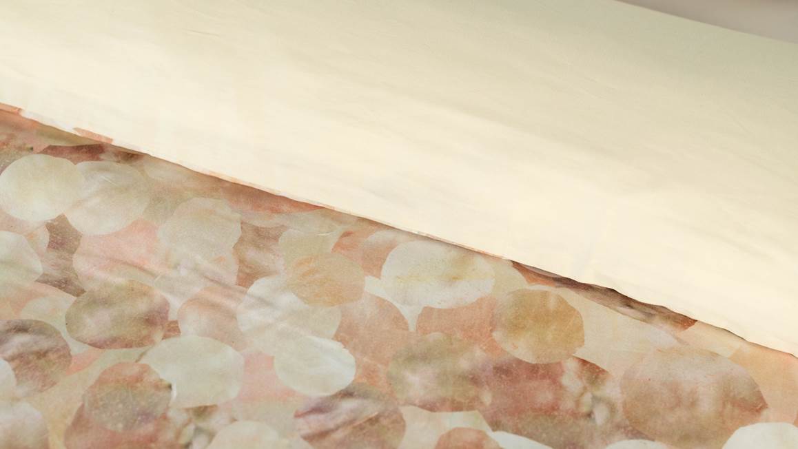 Val iedere avond heerlijk ontspannen in slaap onder het Kayori Gendo dekbedovertrek. De print bestaat uit organische vormen in verschillende zachte aardetinten. Doordat deze elkaar op een speelse wijze overlappen, ontstaat er een gevoel van diepte en komt de print helemaal tot leven. Toch blijft het geheel sereen ogen. Ben je na een tijdje toe aan iets anders? Draai het overtrek om en tover de effen achterzijde tevoorschijn. De bijbehorende kussenslopen bevatten ook beide prints.