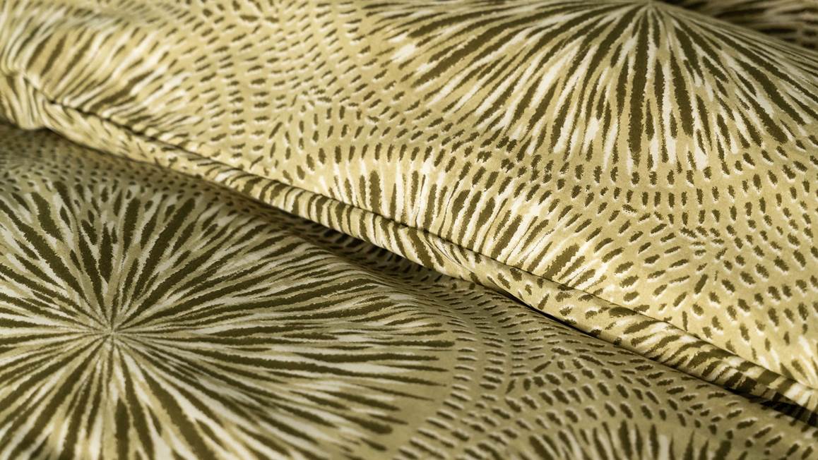 Met het Kayori Yuka dekbedovertrek creëer je iedere avond een zen momentje voor jezelf. Het groene dessin is voorzien van een grafische print die in een symmetrisch patroon op het overtrek zijn geplaatst. Hierdoor straalt het ontwerp rust uit en kan jij iedere keer weer heerlijk ontspannen in slaap vallen. De print is dubbelzijdig gedrukt en loopt door op de bijbehorende kussenslopen.