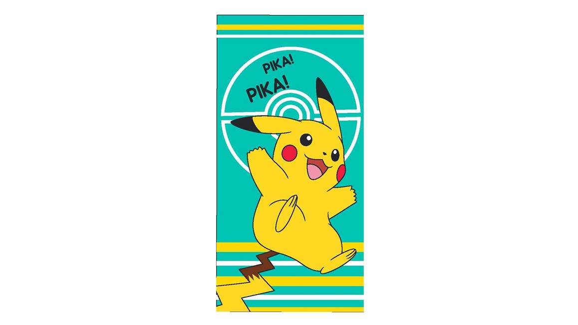 Het Pokémon strandlaken heeft een mooie kleurencombinatie van turquoise met geel. Dankzij het velours katoen aan de voorzijde komen de kleuren stralend naar voren. De achterzijde is effen wit badstof katoen, een fijn materiaal dat moeiteloos afdroogt na een frisse duik.