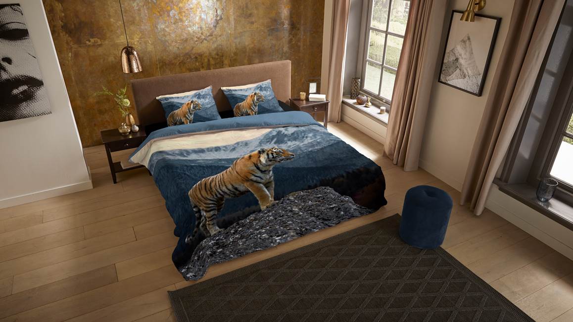Dankzij het Pure Sky dekbedovertrek krijgt jouw slaapkamer een ware make-over! Het mooie dessin bevat een indrukwekkend natuurbeeld. Je ziet de stoere tijger goed naar voren komen tegen de besneeuwde bergen op de achtergrond. Het dessin krijgt hierdoor een prachtige uitstraling. Ben je na een tijdje weer toe aan iets anders? Voor een rustige balans heeft de achterzijde een effen blauwe kleur. Je kunt het overtrek dan ook op meerdere manieren gebruiken.