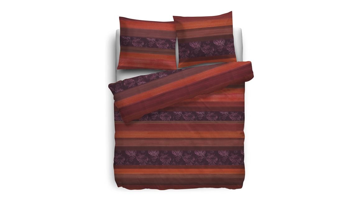 Het Refined Ina flanel dekbedovertrek zorgt voor een warme en sfeervolle slaapkamer. Dit overtrek in de kleuren rood en paars is voorzien van een streepdessin met sierlijke details. Ook de binnenzijde heeft hetzelfde dessin, waardoor het geheel een echte kleurrijke blikvanger in elke slaapkamer is.