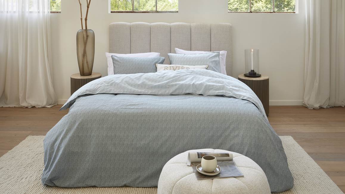 Met het Rivièra Maison Twisted dekbedovertrek kies je voor een trendy kleur in de slaapkamer. Het grijsgroene overtrek bevat een print van een gevlochten patroon die iets wegheeft van een vissengraat. De voorzijde bevat een donkere tint dan de achterzijde, waardoor je een luxe omslag kunt creëren. Natuurlijk kun je ook leuk afwisselen tussen beide prints! Het overtrek en de kussenslopen zijn afgewerkt met een luxe bies.