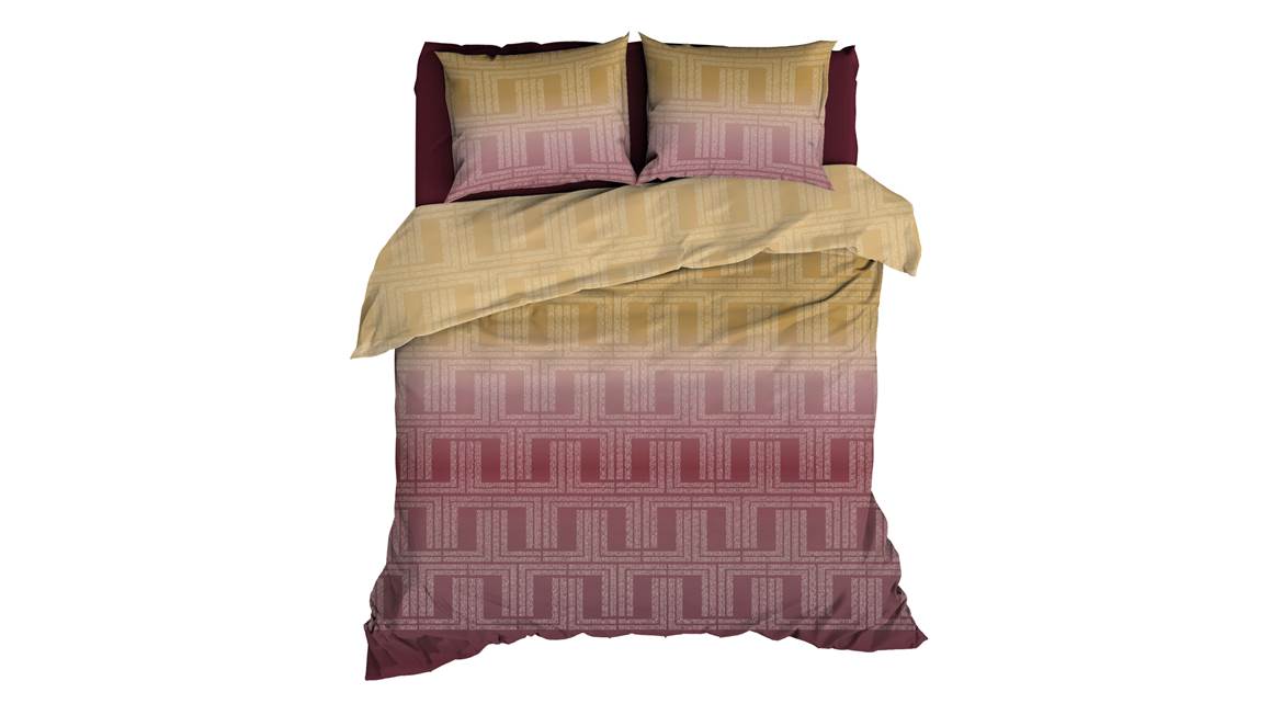 Leg een echte eyecatcher op bed met het Satin d'Or Albenga dekbedovertrek. Het luxe ontwerp bestaat uit een kleurverloop van bordeaux naar goud. Voor een speelse toevoeging is het dessin voorzien van een geometrische print die ook erg strak oogt. De print is dubbelzijdig gedrukt en loopt door op de bijbehorende kussenslopen. De verdeling van de print op de stof van de slopen kan iets afwijken van de afbeelding. Samen creëert het een prachtig geheel.
