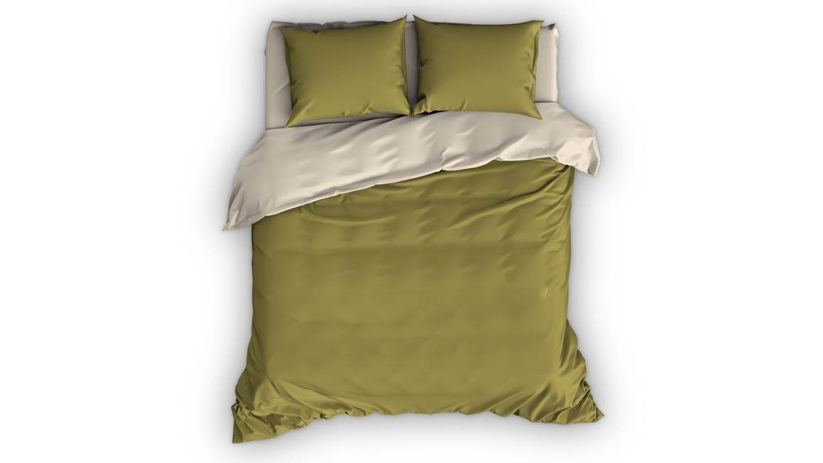 Satin d'Or Reverso dekbedovertrek olijfgroen/beige