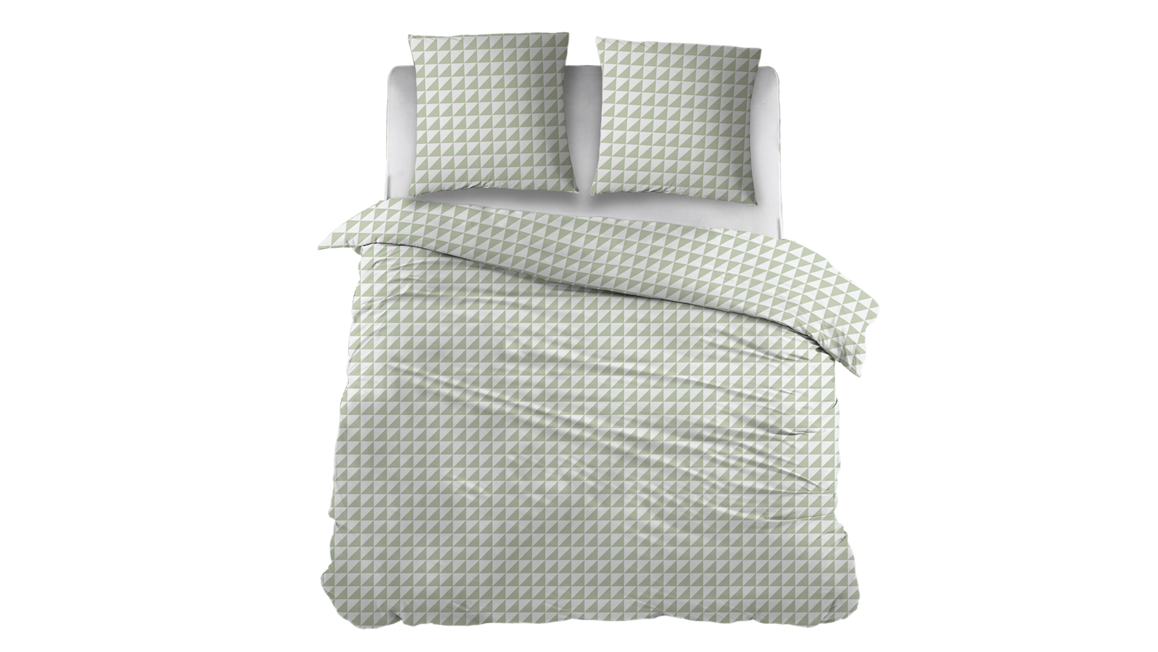 Ben jij een liefhebber van een kleur en moderne prints? Dan is het Snoozing Irina flanel dekbedovertrek echt iets voor jou. Het dessin is opgedeeld uit groene en witte driehoekjes die samen een geometrisch patroon vormen. Deze print is tijdloos en de groene tint is ontzettend trendy. Daarnaast wordt groen eenvoudig geassocieerd met de natuur, zodat je iedere avond heerlijk ontspannen in slaap valt. De dubbelzijdige print loopt door op de bijbehorende kussenslopen.