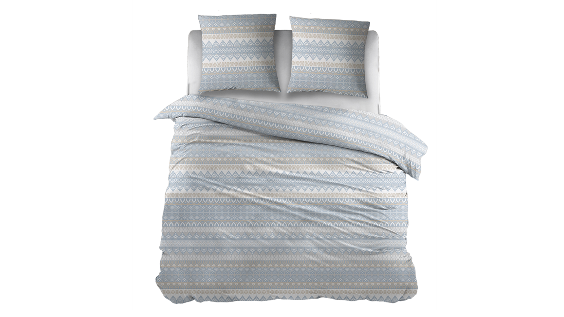Val iedere avond ontspannen in slaap onder het Snoozing Kristel dekbedovertrek. Het witte overtrek is voorzien van een geometrische print om grijs- en blauwtinten. Het ontwerp is en trendy en door het kleurpalet erg fris. Zo verrijkt het iedere slaapkamer, maar vooral in de moderne of Scandinavische stijl komt het ontwerp goed tot zijn recht. De print is dubbelzijdig gedrukt en loopt door op de bijbehorende kussenslopen.