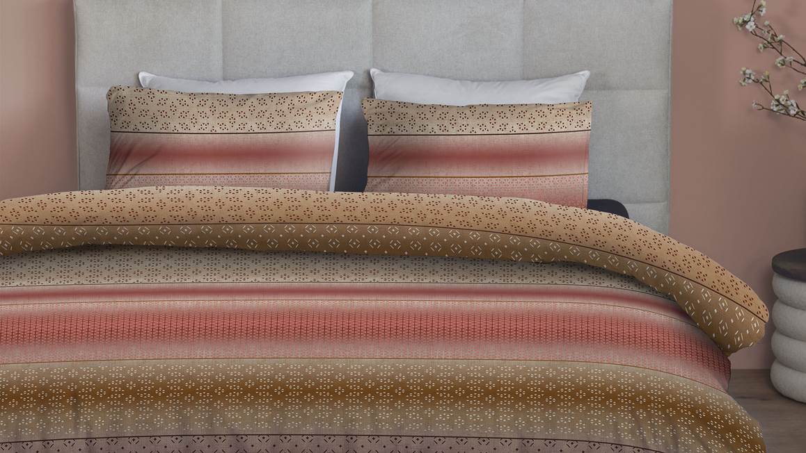 Ben jij een liefhebber van grafische prints, maar kun je niet kiezen? Dan is het Snoozing Milly dekbedovertrek in de kleur terra een echte must voor in jouw slaapkamer. Het overtrek bevat verschillende grafische patronen opgedeeld in horizontale banen. Het kleurverloop in de horizontale banen zorgt voor een speelse touch. De dubbelzijdige print loopt door op de bijbehorende kussenslopen.