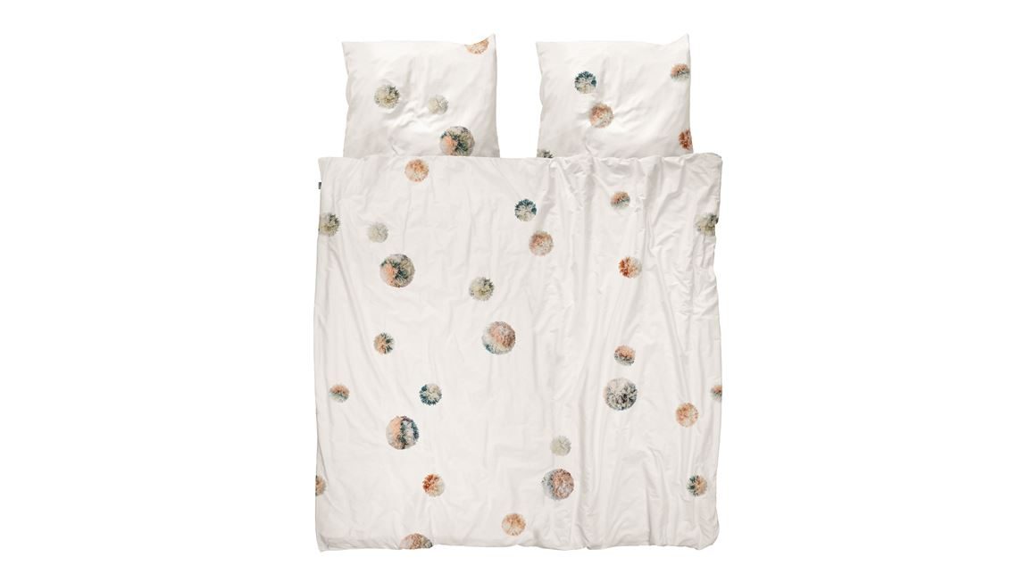 Wie wil er niet het liefst wakker worden met een glimlach? Haal daarom een vrolijke sfeer in je slaapkamer met het het Pom Pom dekbedovertrek van SNURK. De witte basis van het dekbedovertrek maakt het geschikt voor kleine slaapkamers, het geeft een ruimtelijk effect. De pompons in romantische pastelkleuren zorgen voor de fleurige look.